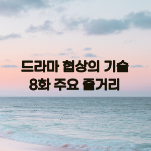 이처럼 <드라마 협상의 기술>은 협상의 기술을 단순히 기술적인 측면에서만 다루지 않고, 인간적인 면모까지 보여줌으로써 시청자들의 공감을 이끌어내고 있습니다. 앞으로도 이 드라마가 협상의 세계를 어떻게 풀어나갈지 기대해 볼만합니다. 이번 8회 줄거리에서 어떤 점을 배우셨나요?